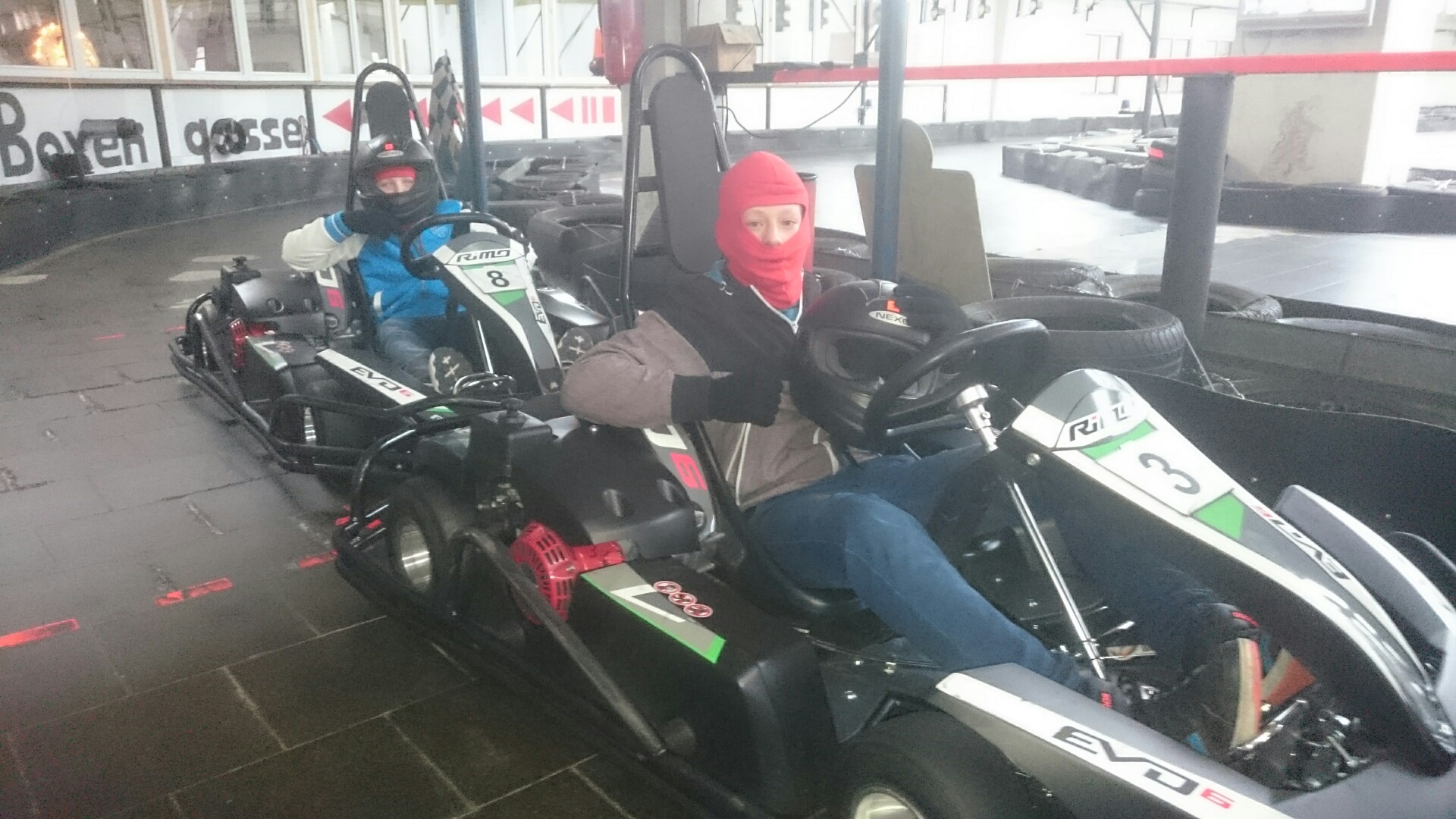 Und dann hieß es endlich: Vollgas! Nach unzähligen Runden auf der Strecke, kleinen Unfällen, viel Adrenalin und unendlich Spaß stiegen Enrico und sein Freund überglücklich aus den Kartfahrzeugen aus.